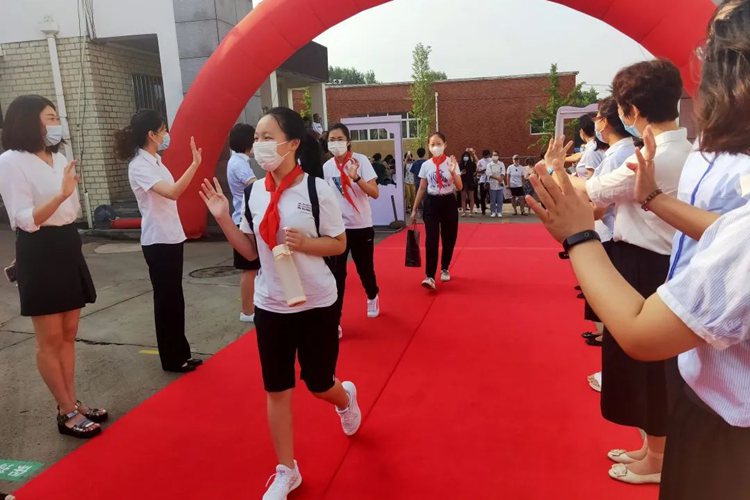 彩虹門,大紅毯,迎面走來了一張張笑臉。初一新生在家長的陪伴下,走進(jìn)嘉匯三中大門。在特制相框前合影留念,或一人,或全家,都是對未來的美好展望。嘉匯三中校領(lǐng)導(dǎo)和老師們在紅毯兩側(cè)夾道歡迎,口罩后一雙雙笑眼,讓每個(gè)孩子都感受到家的溫暖。