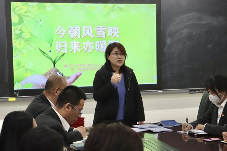 表彰結(jié)束后,陳贊歌校長做總結(jié)講話。她慷慨激昂,飽含深情,真心實意的與大家交流,和大家一起回憶陽光初中建校半年來的點點滴滴,有困難,有不易,更有信心和力量。這些力量來源于班子團隊的同心同德,信心滿滿;來源于每一位老師的辛勤努力,合力共創(chuàng);也來源于陽光校園里無限的愛與暖。話到深處,情到濃時大家內(nèi)心溫暖、眼角濕潤。