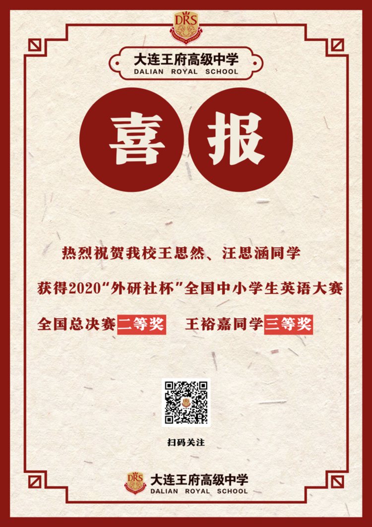 大連王府高級中學(xué)的學(xué)生們在各大演講賽事中取得的傲人成績,展示了王府學(xué)子的智慧和風(fēng)采,不僅為學(xué)生們在大學(xué)申請中贏得了世界各大名校招生官的青睞,也充分彰顯了學(xué)校 「中華人本情懷,國際精英視野」 的辦學(xué)理念。未來,學(xué)校會在融合東西方文化的過程中,繼續(xù)注重培養(yǎng)學(xué)生的溝通技巧和領(lǐng)導(dǎo)能力,最終成為具有國際視野和全球競爭力的復(fù)合型精英領(lǐng)袖人才。