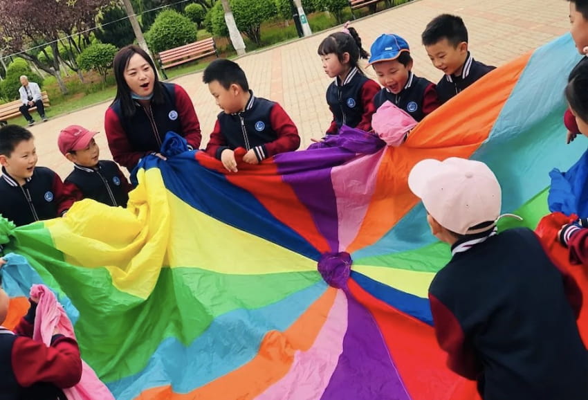 春游時(shí),一起游戲最快樂。微風(fēng)過,笑聲漾。陽光、春風(fēng)、美食,還有一群群歡樂的小朋友歡快地游戲。