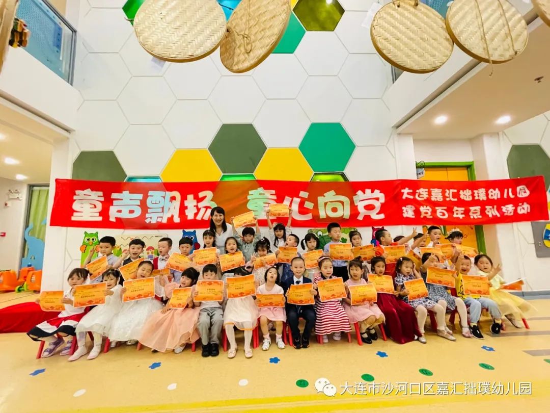 學習黨史,是為了不忘初心。從 1921 到 2021,時間跨越百年,我們黨從建黨之初只有 50 多名中共黨員到如今擁有 9000 多萬名黨員的世界第一大執(zhí)政黨。為發(fā)揚紅色傳統,傳承紅色精神,在建黨百年華誕來臨之際,大連嘉匯拙璞幼兒園開展 「童聲飄揚 童心向黨」 建黨百年主題活動,全園共慶,獻禮黨生日。