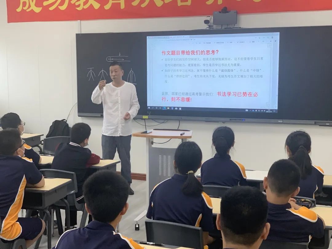 從書法的世界里,能夠讓我們學會很多道理,書法所蘊含的人生哲理,諸如含蓄內斂,停滯迂回等,讓人深受教育。姜老師從今年高考作文題入手,講了書法與做人的關系,書寫 「人」 的過程也是體會做人道理的過程。同學們既了解書法,又接受了精神的洗禮。