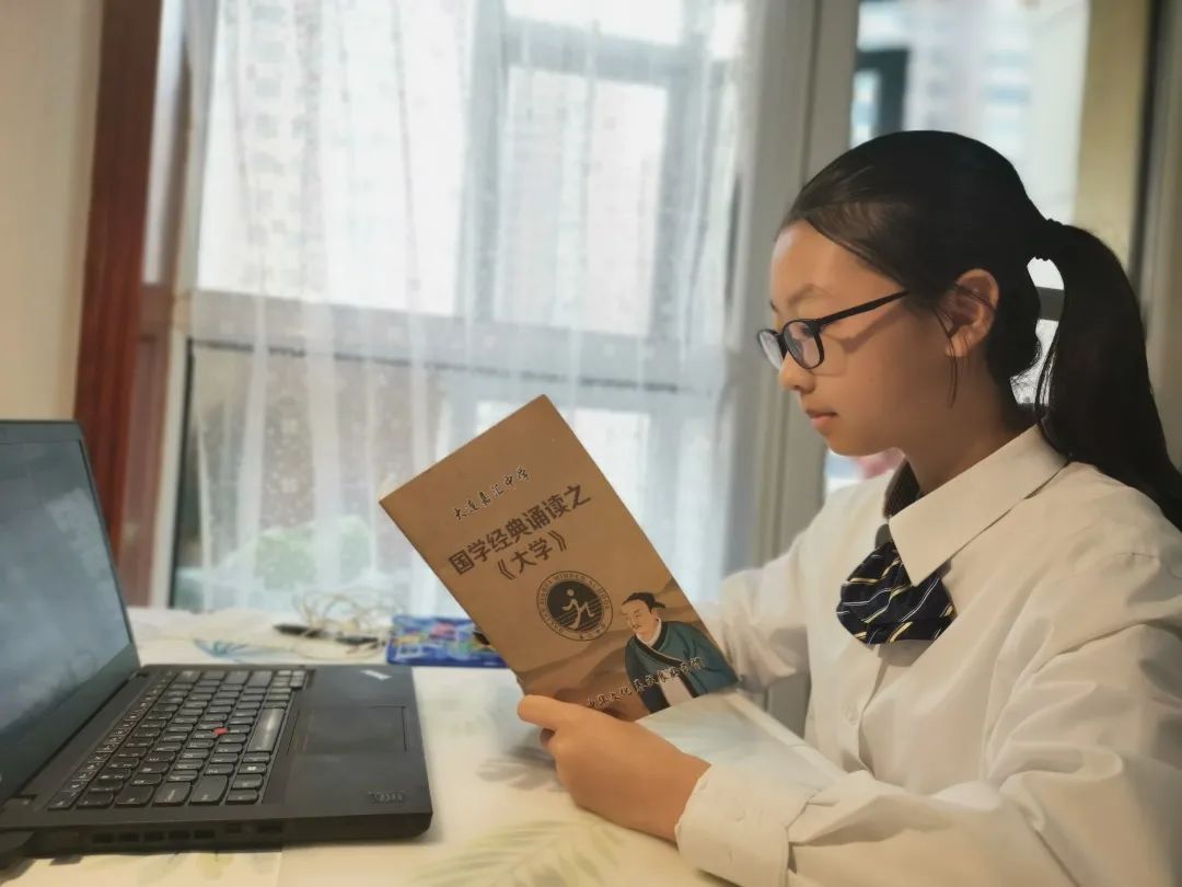 在國學(xué)經(jīng)典誦讀環(huán)節(jié),今天同學(xué)們在主持人的解讀之后,一起誦讀了 《大學(xué)》 第六章,感悟 「明德」 的意義。