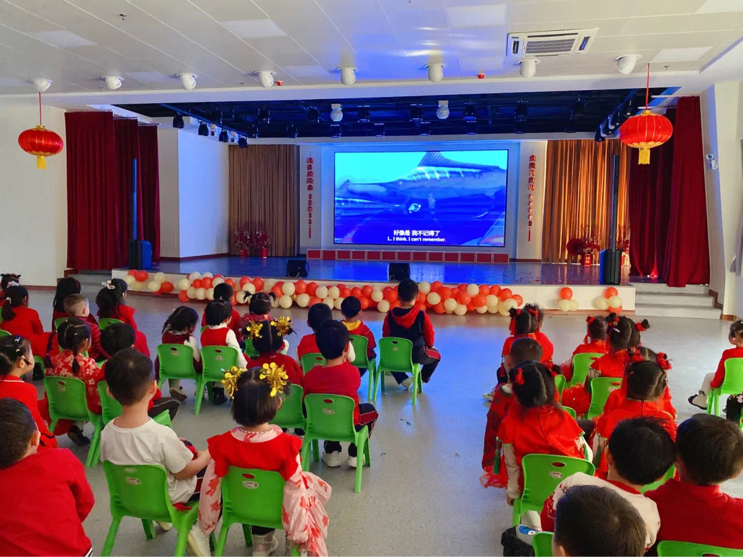 表演結(jié)束,孩子們一同坐好,觀看動畫,場面一片溫馨。