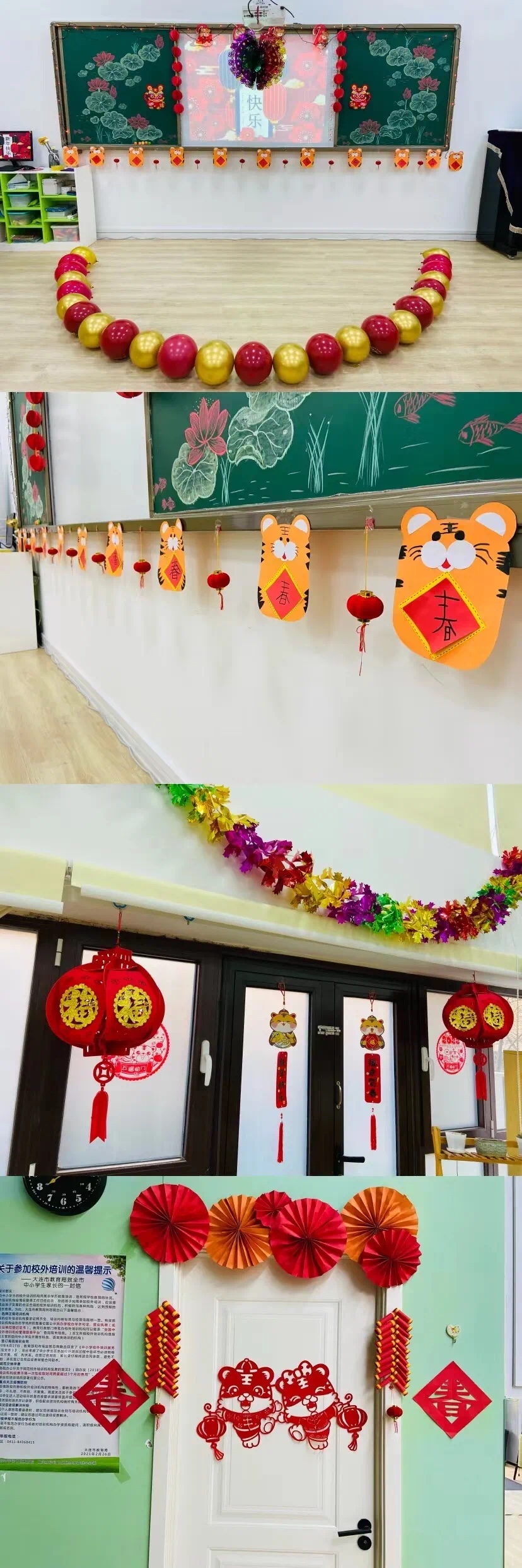 為了更好地迎接元旦,老師、小朋友齊動手,提前做了新年手工制作,教室張燈結彩,喜氣洋洋!年味兒傳遍了教室的各個角落。