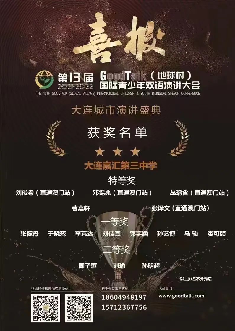 2022 年 7 月 21 日 繼國際英語拼詞大賽決賽四名學(xué)生獲獎(jiǎng)后,我校又有 16 名學(xué)生在第 13 屆 GoodTalk(地球村) 國際青少年雙語演講大會(huì)中喜獲國際大獎(jiǎng),讓我們一起來恭喜他們! 『 Related Posts