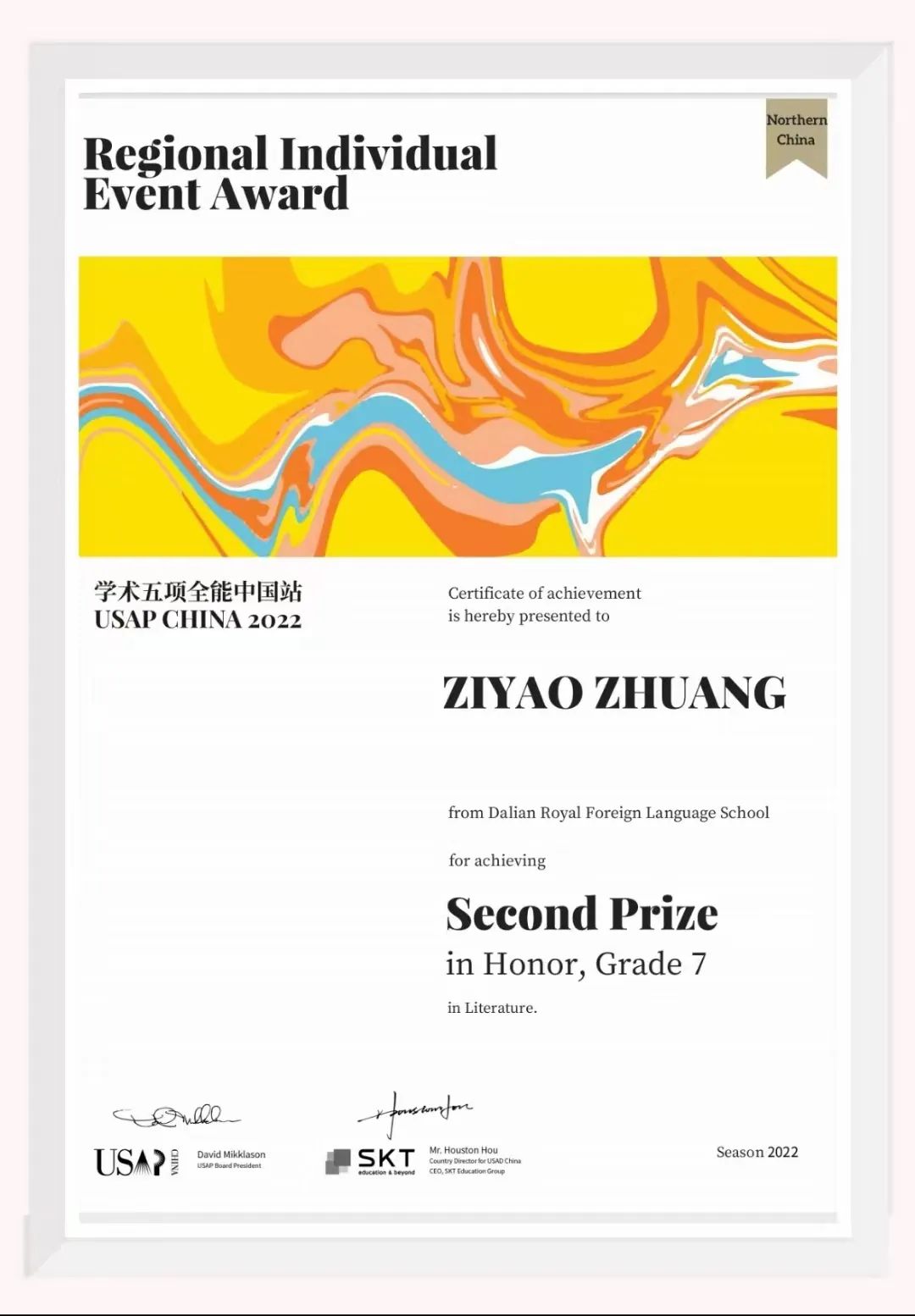 - 文學(xué):華北區(qū)二等獎(jiǎng)