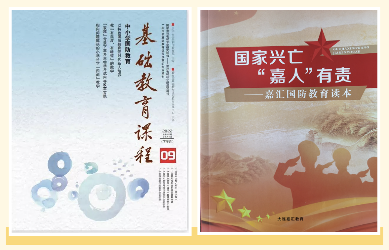 日前,由教育部主管、教育部基礎(chǔ)教育課程教材發(fā)展中心主辦的 《基礎(chǔ)教育課程》 雜志 2022 年 9 期 (下) 刊登了 《厚植紅色基因,培育家國情懷——嘉匯教育集團開展國防教育的實踐探索與思考》 一文,文章梳理了嘉匯教育集團國防教育體系建設(shè)的過程,總結(jié)了學(xué)校開展國防教育的經(jīng)驗和做法。