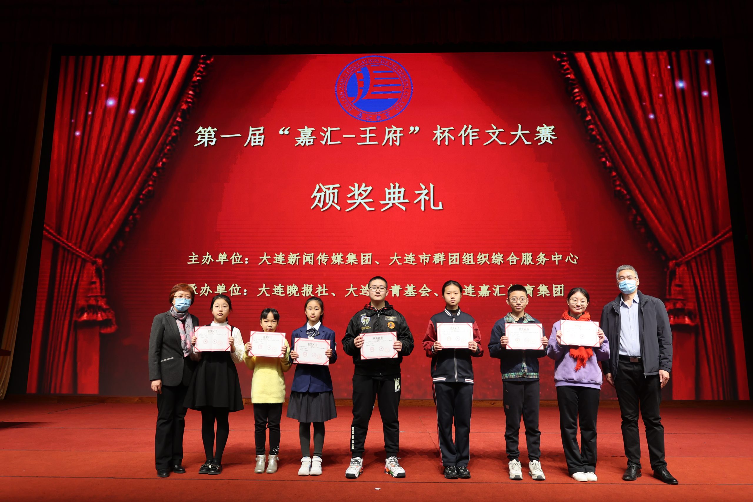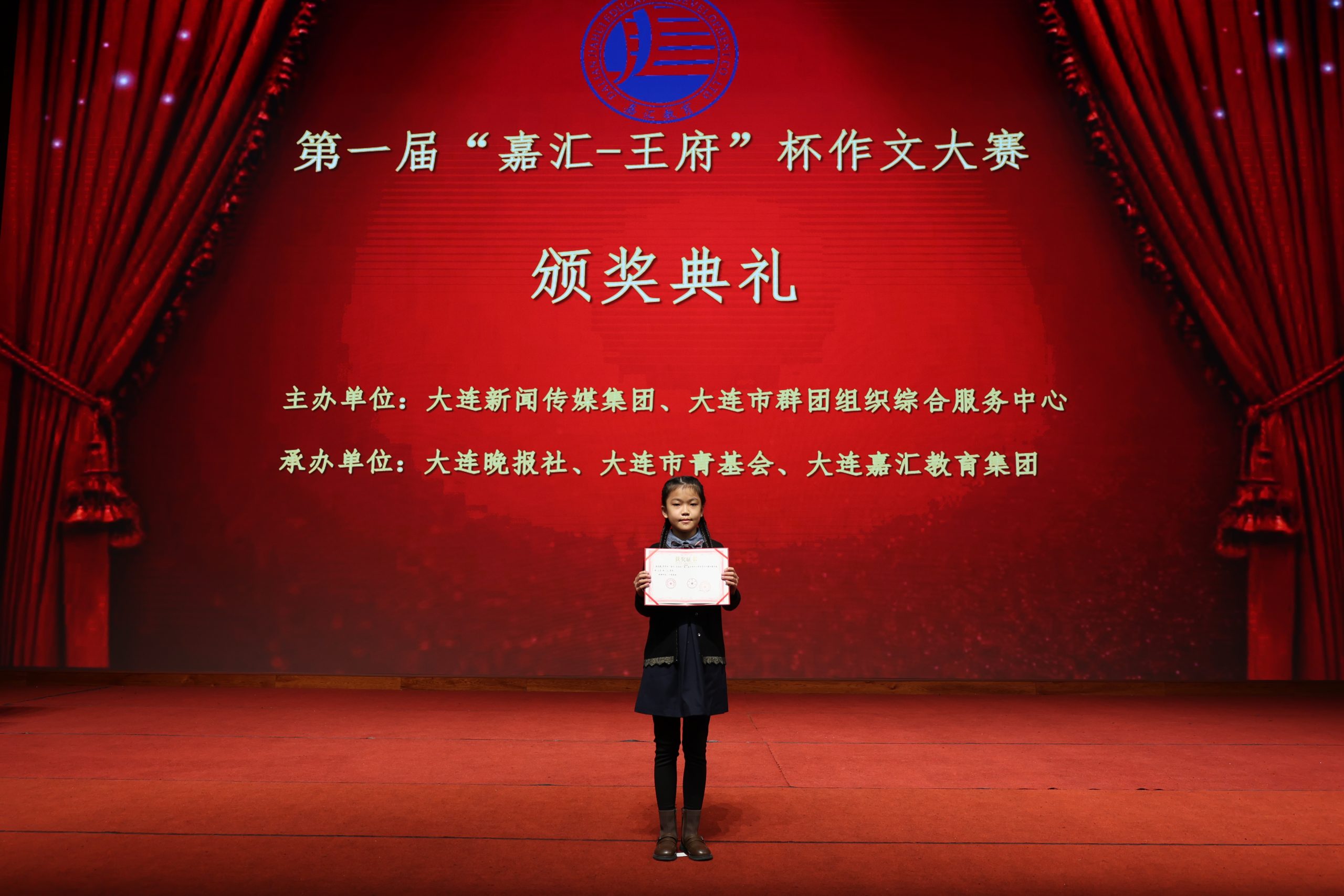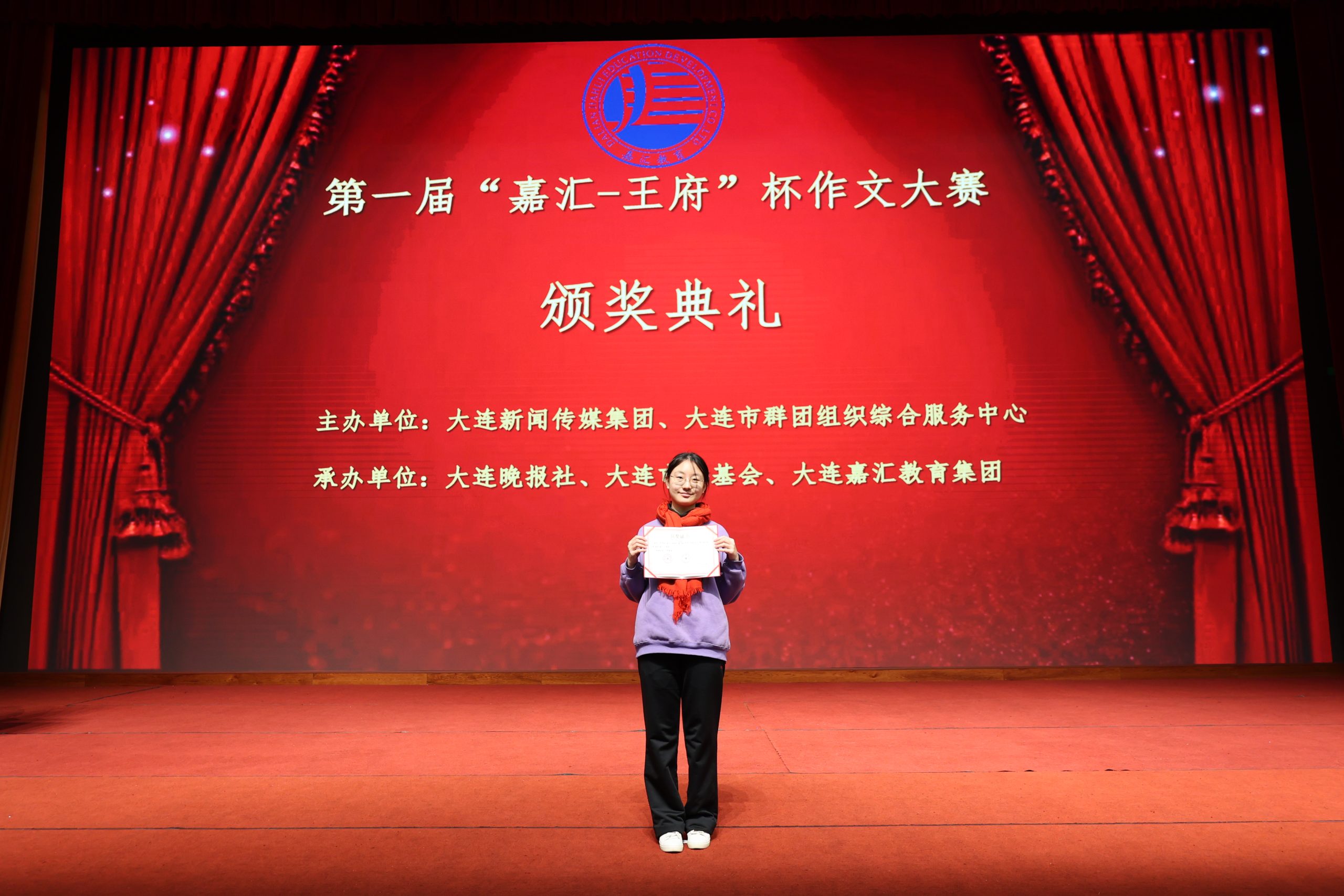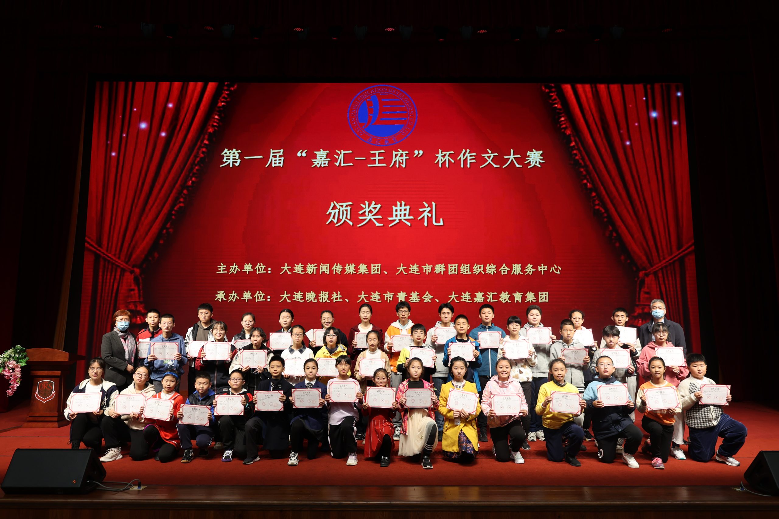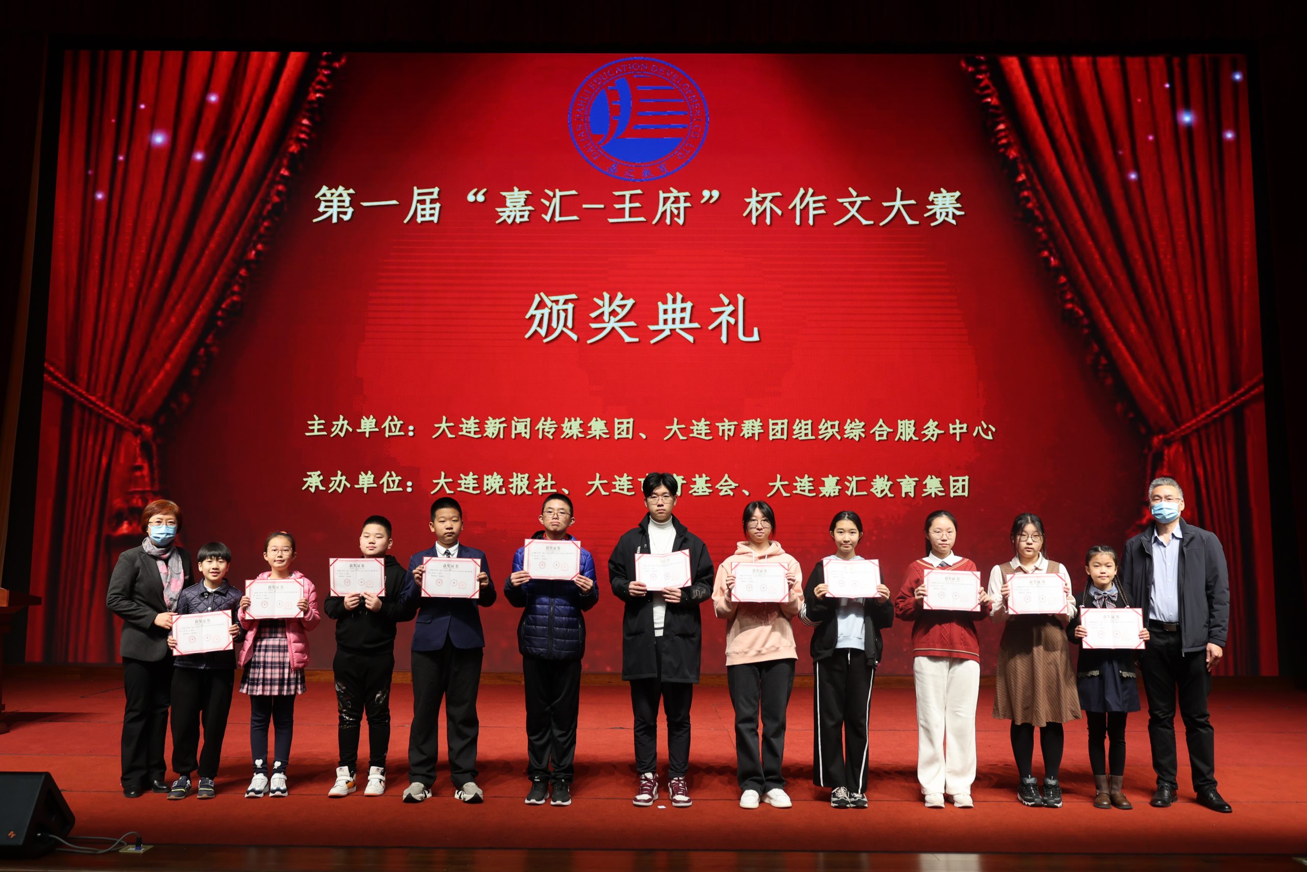 11 月 20 日,由大連新聞傳媒集團(tuán)、大連市群團(tuán)組織綜合服務(wù)中心主辦,大連晚報社、大連市青基會、大連嘉匯教育集團(tuán)承辦的 「嘉匯-王府杯」 第一屆全市中小學(xué)生寫作大賽頒獎儀式在高新區(qū)大連王府高級中學(xué)舉行。大連市素質(zhì)教育研究會會長韓巍、嘉匯教育集團(tuán)教育教學(xué)部副部長高自發(fā)為本次大賽獲獎選手和優(yōu)秀指導(dǎo)教師頒發(fā)了證書及獎金。