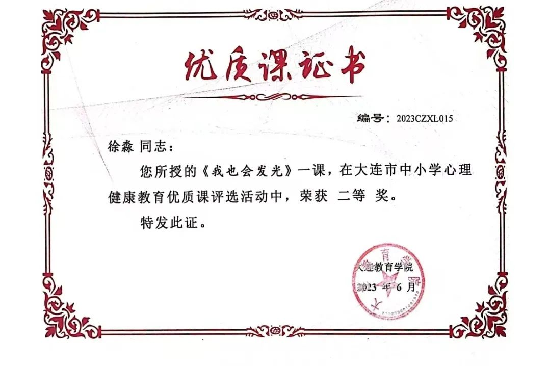 近日,大連市初中心理健康優(yōu)質(zhì)課評(píng)選活動(dòng)結(jié)果公布,大連王府外國(guó)語(yǔ)學(xué)校初中部教師執(zhí)教的心理課 《我也會(huì)發(fā)光》 榮獲大連市心理優(yōu)質(zhì)課二等獎(jiǎng),并作為大連地區(qū) 13 位優(yōu)秀代表參加 「遼寧省中小學(xué)心理健康教育優(yōu)秀成果展示會(huì)」 。