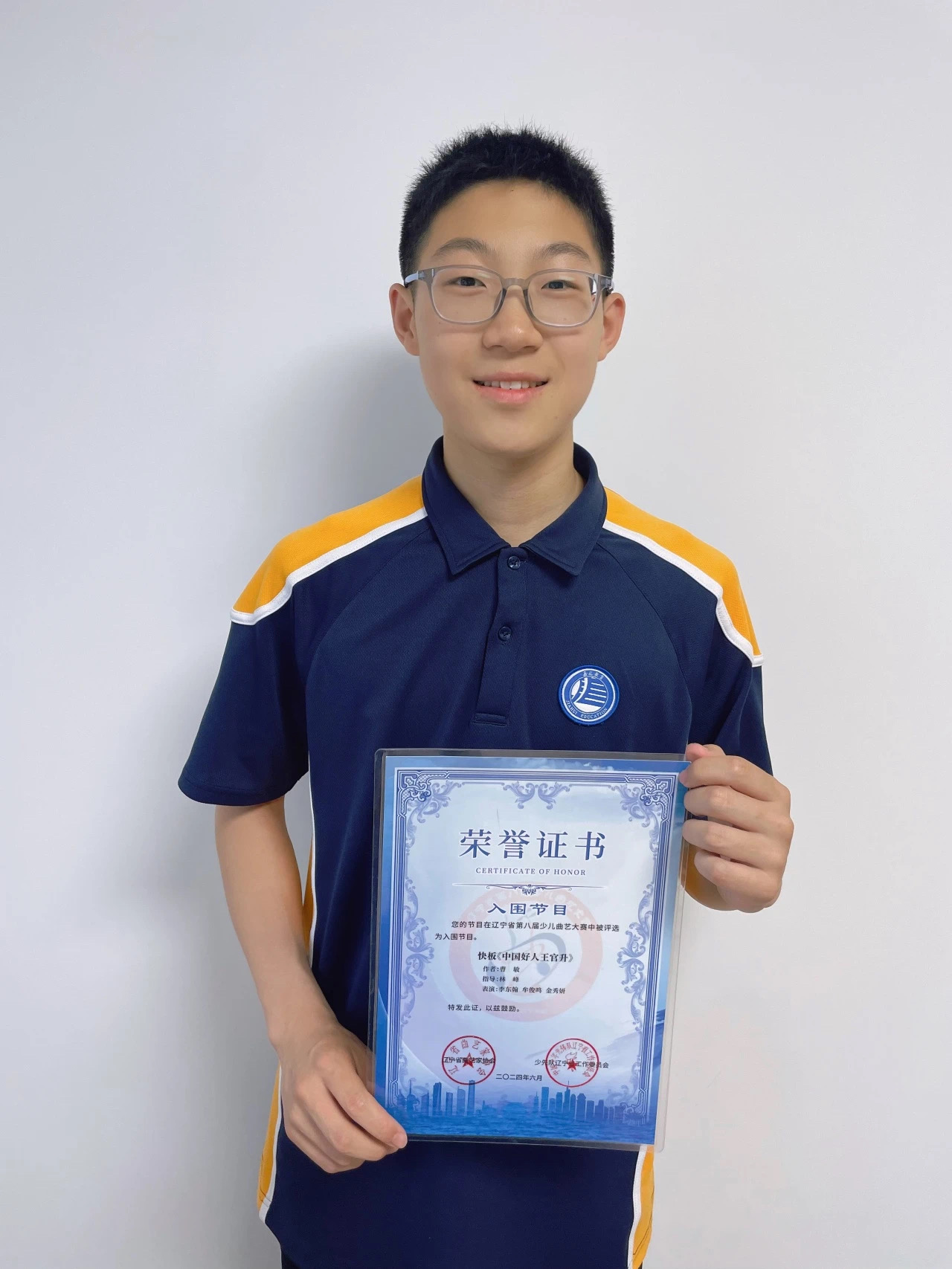 近日,在遼寧省第八屆少兒曲藝大賽暨全國少兒曲藝展演選拔賽中,大連嘉匯三中 1 名學(xué)子參演的快板 《中國好人王官升》 被評選為全國入圍節(jié)目。