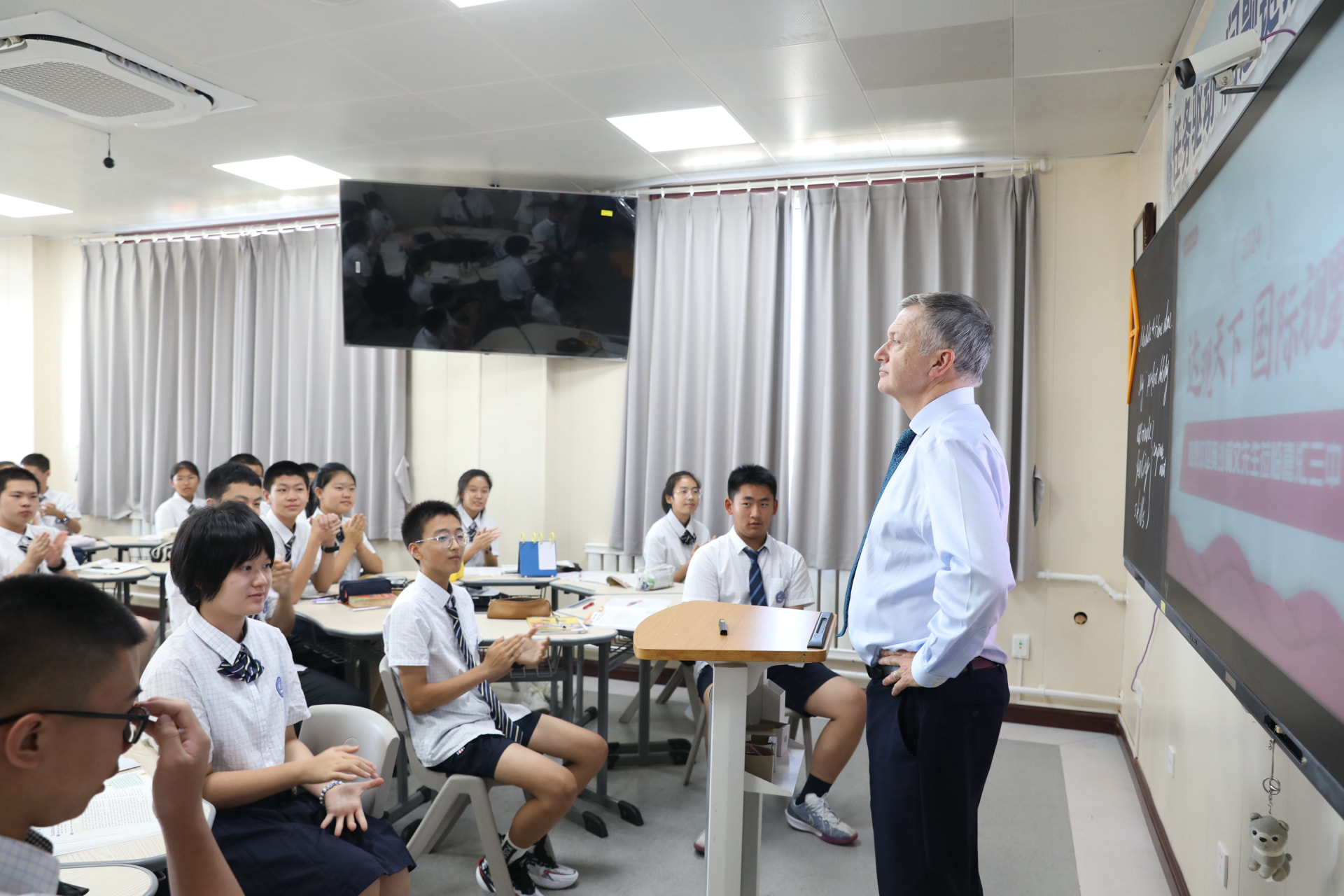 奧沙利文先生先后到訪大連王府外國語學校、大連王府高級中學、大連嘉匯陽光學校、大連嘉匯第三中學校園,參觀過程中對各校文化氛圍及環(huán)境建設給予高度評價。