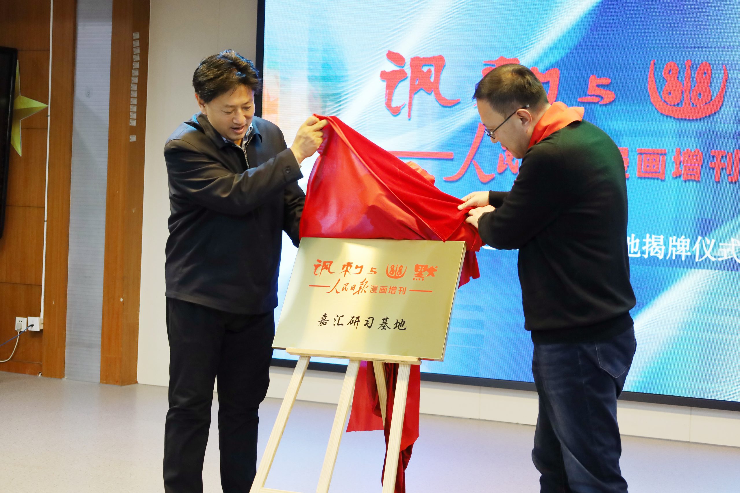 隨后在熱烈的掌聲中,岳增敏先生和周游先生共同為 「嘉匯青少年漫畫(huà)研習(xí)基地」 揭牌!隨著紅綢的緩緩落下,一個(gè)全新的漫畫(huà)創(chuàng)作與學(xué)習(xí)的殿堂正式向我們敞開(kāi)大門(mén)。這不僅是嘉匯教育集團(tuán)與 《諷刺與幽默》 報(bào)合作的里程碑,更是每一位熱愛(ài)漫畫(huà)、懷揣夢(mèng)想的學(xué)生的福音。