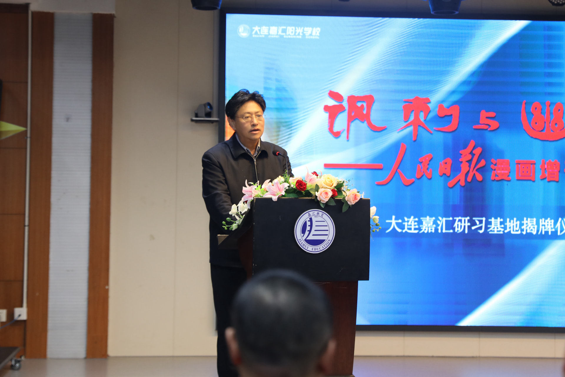 人民日?qǐng)?bào)社漫畫(huà)增刊 《諷刺與幽默》 報(bào)總編輯岳增敏先生宣讀建設(shè)基地回函,并在講話中充分肯定了嘉匯教育集團(tuán)的育人理念,對(duì)于中國(guó)傳統(tǒng)文化教育予以高度重視,切實(shí)地將習(xí)近平總書(shū)記的文化思想踐行于教育的每一處細(xì)節(jié)之中,使之真正落地生根,嘉匯教育已然成為大連教育的一個(gè)生動(dòng)鮮活的縮影,宛如一面鏡子,映射出大連教育的多元風(fēng)貌與特色亮點(diǎn)。