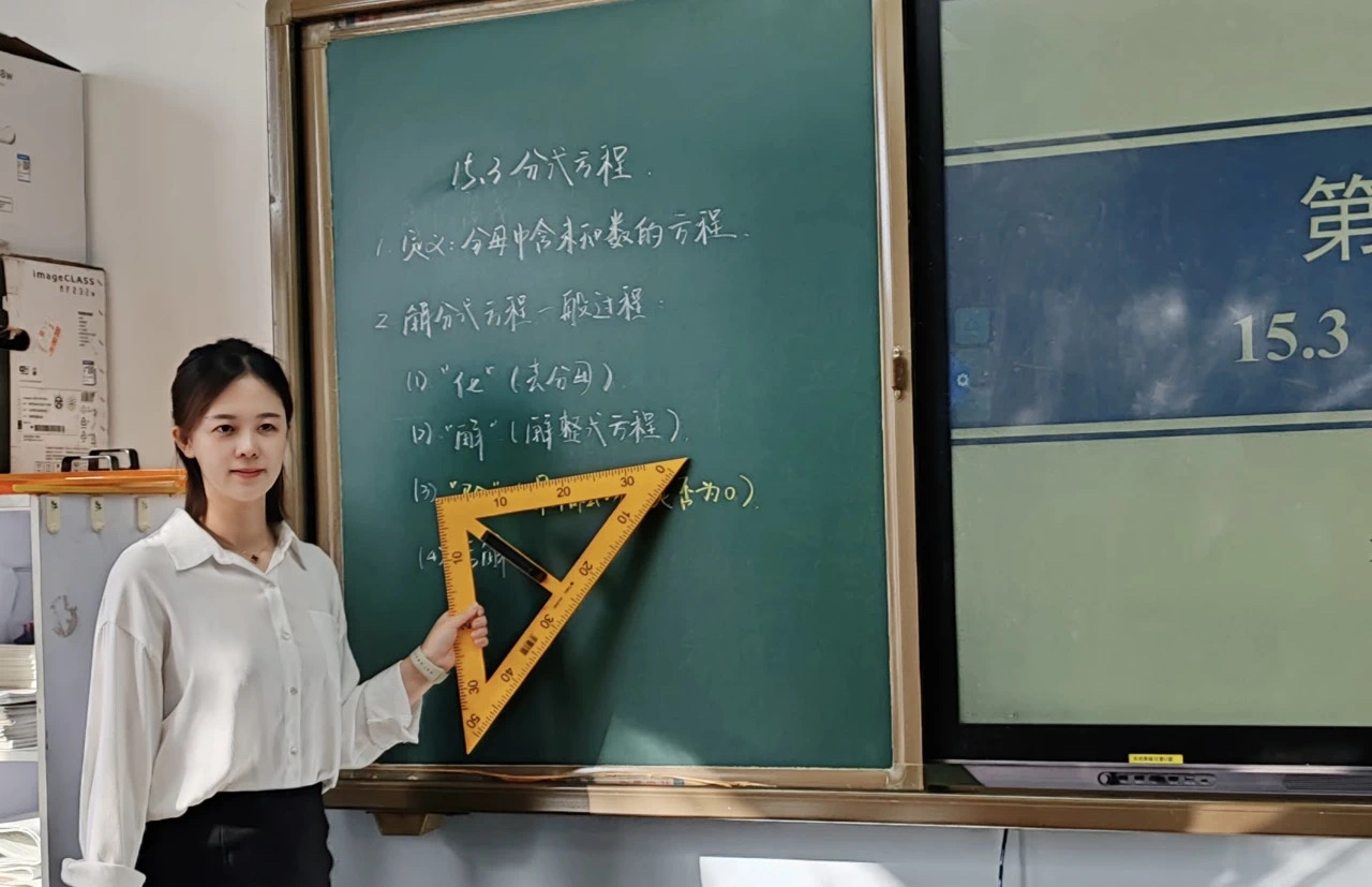 近日,大連市教育局、大連市教育學院、大連市教科文衛(wèi)體工會共同舉辦 2024 年大連市 「工匠杯」 青年教師技能大賽優(yōu)秀選手旅順送教活動,組織市優(yōu)秀教師赴旅順口區(qū)第五十八中學送課支教。大連嘉匯中學青年數(shù)學教師黎秋彤作為 2024 年大連市 「工匠杯」 大賽全市第一名,榮幸受邀參加此次活動,為旅順口區(qū)第五十八中學師生講授八年級 《分式方程》 一課,贏得了當?shù)貛熒团c會專家老師們的高度肯定。