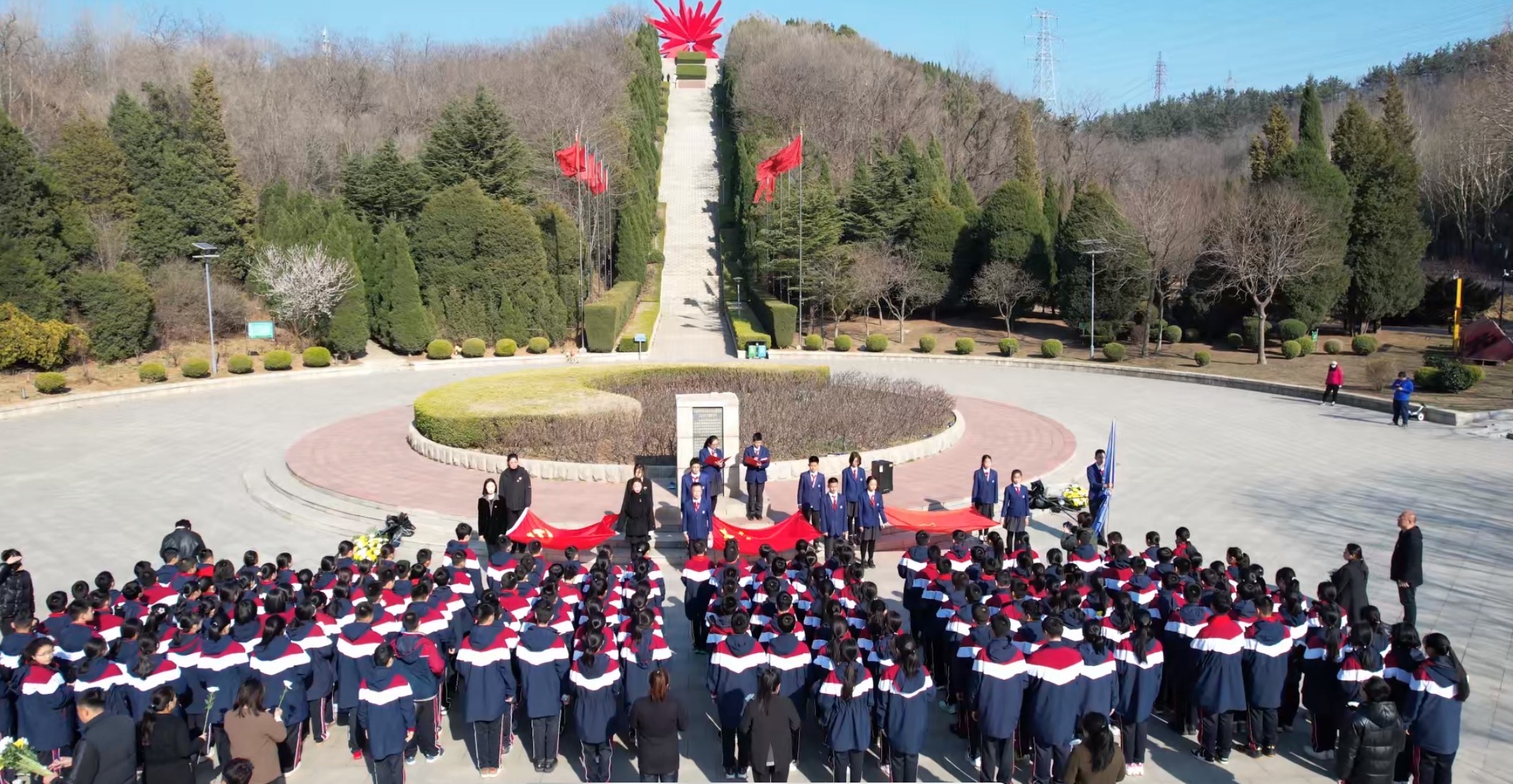 清明前夕,嘉匯陽光學(xué)校初中部組織學(xué)生觀看革命歷史影片,精心制作獻(xiàn)花作品。 4 月 3 日,師生代表赴大連市烈士陵園舉行祭掃活動,黨員與少先隊員宣誓明志,黨員代表宣讀祭文,學(xué)生誦讀 《少年中國說》,并認(rèn)領(lǐng)樹苗,寓意傳承精神扎根生長。