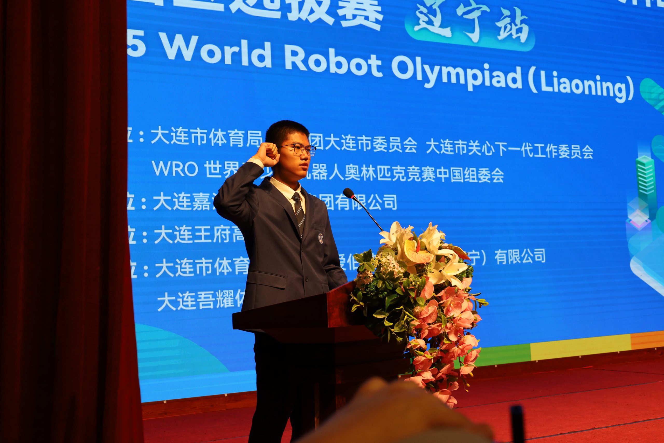 WRO 中國(guó)區(qū)組委會(huì)副秘書長(zhǎng)周偉先生進(jìn)行致辭,他介紹了 WRO 賽事的全球影響力,肯定其在激發(fā)青少年創(chuàng)新潛能、培養(yǎng)團(tuán)隊(duì)協(xié)作精神方面的作用,并對(duì)大連王府高級(jí)中學(xué)的賽事籌備工作表示認(rèn)可。他提到,遼寧選拔賽以培育具有科學(xué)潛質(zhì)的青少年為使命,致力于普及人工智能知識(shí)、啟迪科學(xué)素養(yǎng)、引導(dǎo)科技報(bào)國(guó);同時(shí)寄語選手珍惜機(jī)會(huì),展現(xiàn)才華、弘揚(yáng)團(tuán)隊(duì)精神,預(yù)祝賽事成功、選手出彩。