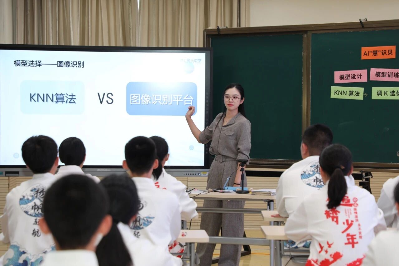 在大會(huì)第一天下午的初中教學(xué)觀摩環(huán)節(jié)中,我校信息科技教師林姿岑代表遼寧省,展示了一節(jié)題為 《AI「慧」 識(shí)貝——基于 KNN 算法的機(jī)器學(xué)習(xí)》 的公開(kāi)課。該課以 「趕海識(shí)貝」 為真實(shí)情境,引導(dǎo)學(xué)生從生活經(jīng)驗(yàn)出發(fā),經(jīng)歷 「數(shù)據(jù)標(biāo)注—算法理解—模型訓(xùn)練—倫理反思」 的完整探究過(guò)程,將抽象的機(jī)器學(xué)習(xí)原理轉(zhuǎn)化為可視、可觸、可思的學(xué)習(xí)體驗(yàn)。