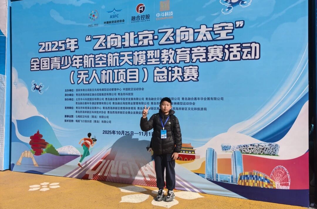 在 2025 年 「飛向北京·飛向太空」 全國青少年航空航天模型教育競賽活動 (無人機(jī)項(xiàng)目) 總決賽上,1 名學(xué)生斬獲小學(xué)組一等獎,此前,該學(xué)生還取得第九屆全國青少年無人機(jī)大賽總決賽 「雷霆行動」 賽 (小學(xué)組) 一等獎。
