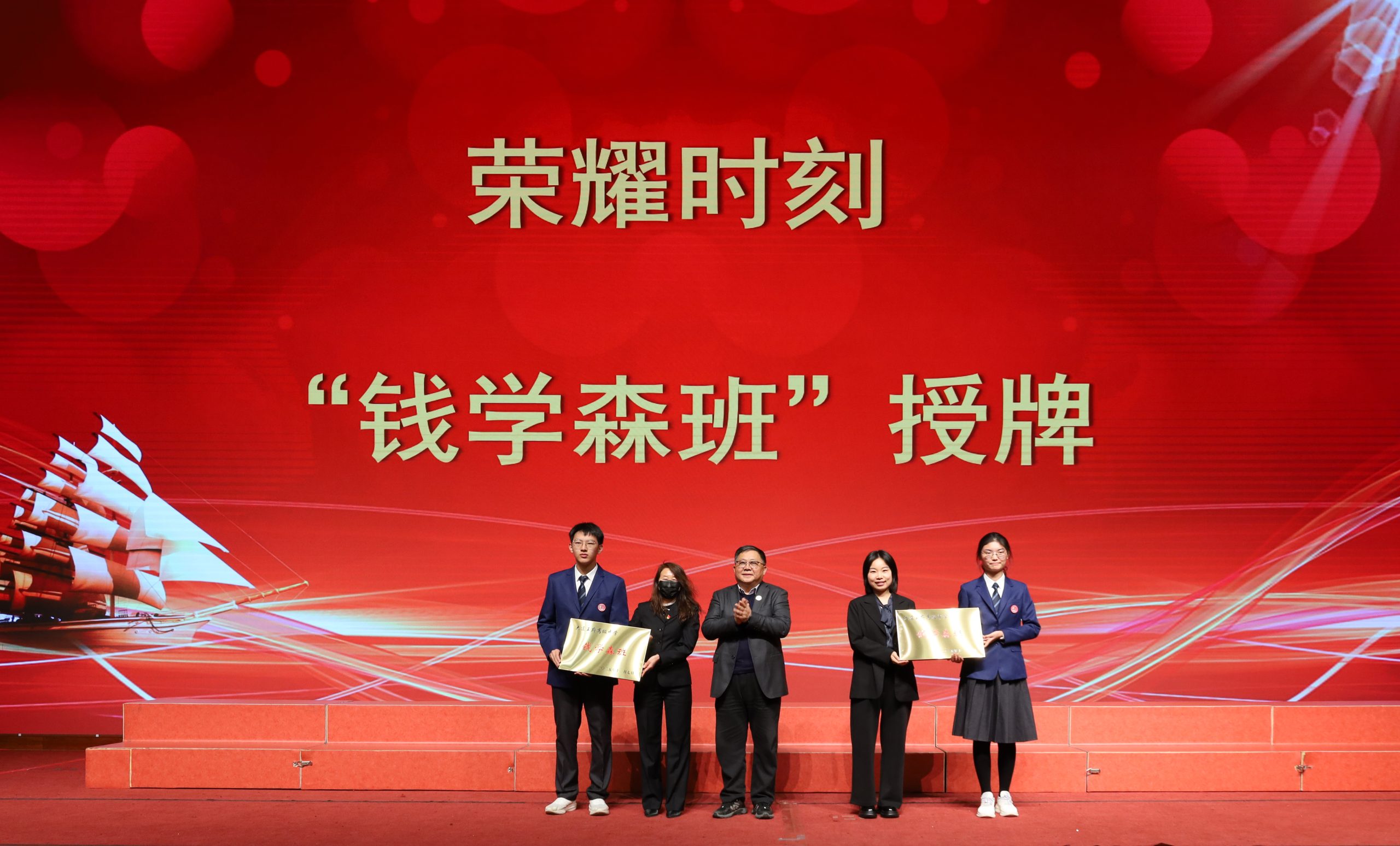 11 月 19 日,大連王府高級中學(xué) 「錢學(xué)森班」 授牌儀式暨錢學(xué)森精神學(xué)習(xí)大會在致遠(yuǎn)樓禮堂隆重舉行。會議由高一年級主任楊秀君主持,嘉匯教育集團(tuán)及學(xué)校領(lǐng)導(dǎo)、全體高一年級師生齊聚一堂,共同見證這一重要時(shí)刻。