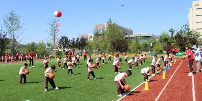 園內(nèi)綠樹環(huán)繞,場地明朗開闊,設有陽光沐浴區(qū)、迷宮區(qū)、攀爬區(qū)、沙池區(qū)、種植區(qū)等。大面積的草坪、坡地、樹木是幼兒與大自然親密接觸的 「橋梁」 。孩子們在這里感受四季的交替,細嗅泥土的芬芳,肆意奔跑,釋放童真。生態(tài)式的環(huán)境給予了孩子們最大的自由成長空間。依托得天獨厚的 「天然氧吧」 優(yōu)勢,幼兒園精心打造了體適能特色課程。充足的戶外時間,專業(yè)的體育教師,豐富的運動器械,孩子們大膽嘗試,積極探索,在收獲快樂的同時提升機能水平,發(fā)展身體素質(zhì)。